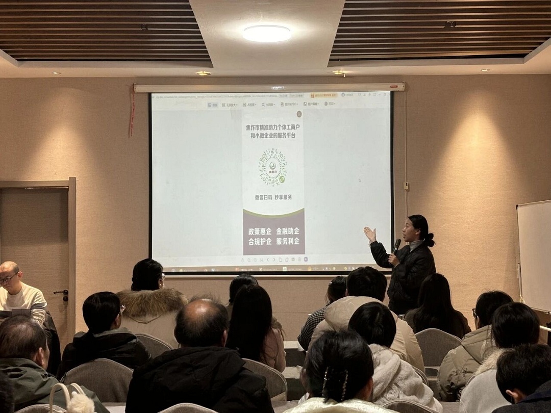 活动现场,“焦惠办”平台工作人员围绕平台服务功能与注册操作流程进行详细讲解。现场的企业商户跟随工作人员的讲解,纷纷拿出手机了解并注册“焦惠办”,体验平台功能。